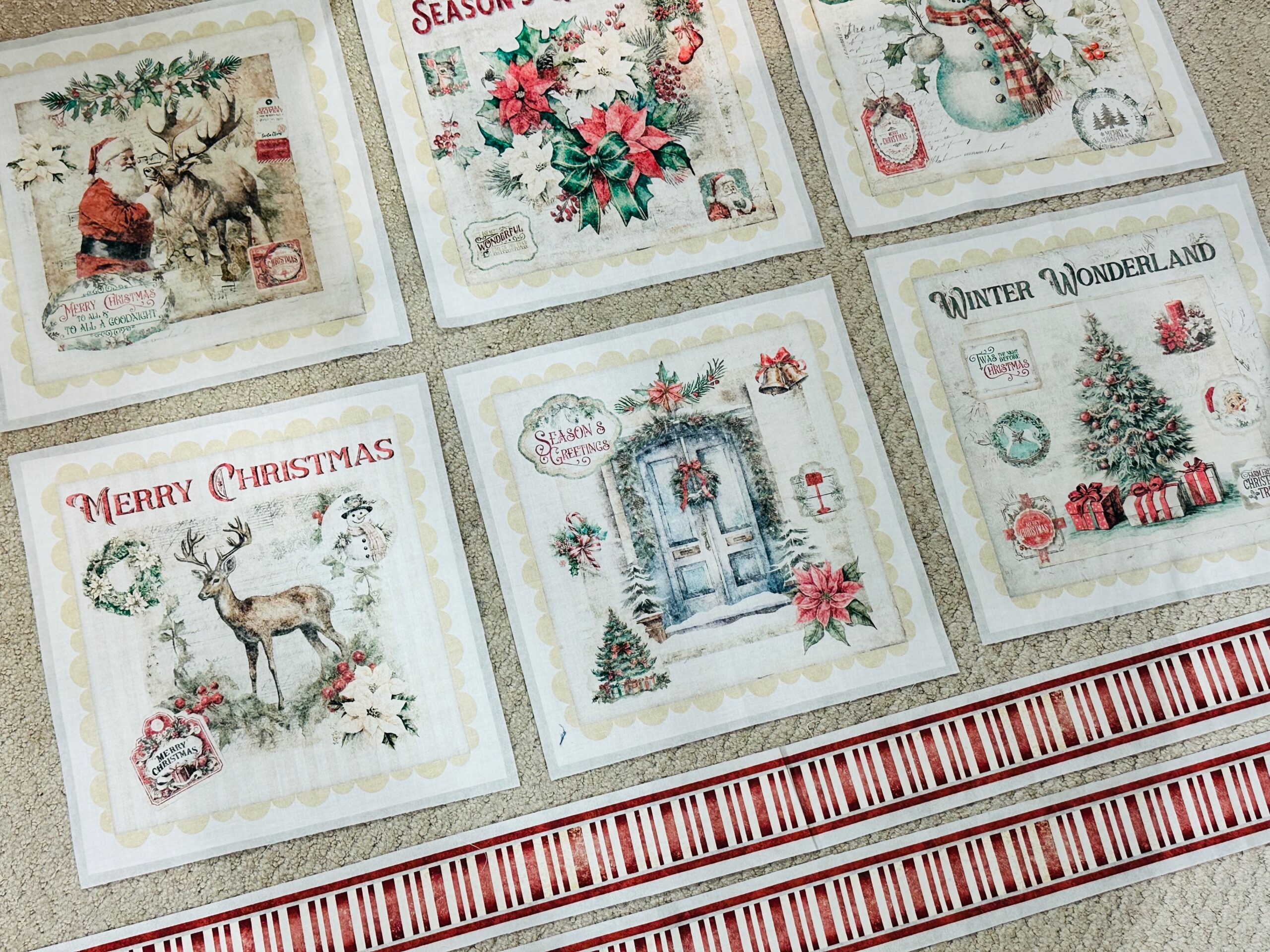 This beautiful design features a 1-yard Christmas Collage panel printed with picture patches in antique Victorian fashion, designed by Quilting Treasures. Each image evokes memories of cozy gatherings, twinkling lights and heartfelt celebrations from days gone by. Whether you love classic Christmas décor or want to add a touch of nostalgic elegance to your modern home, this table runner makes a gorgeous statement piece.