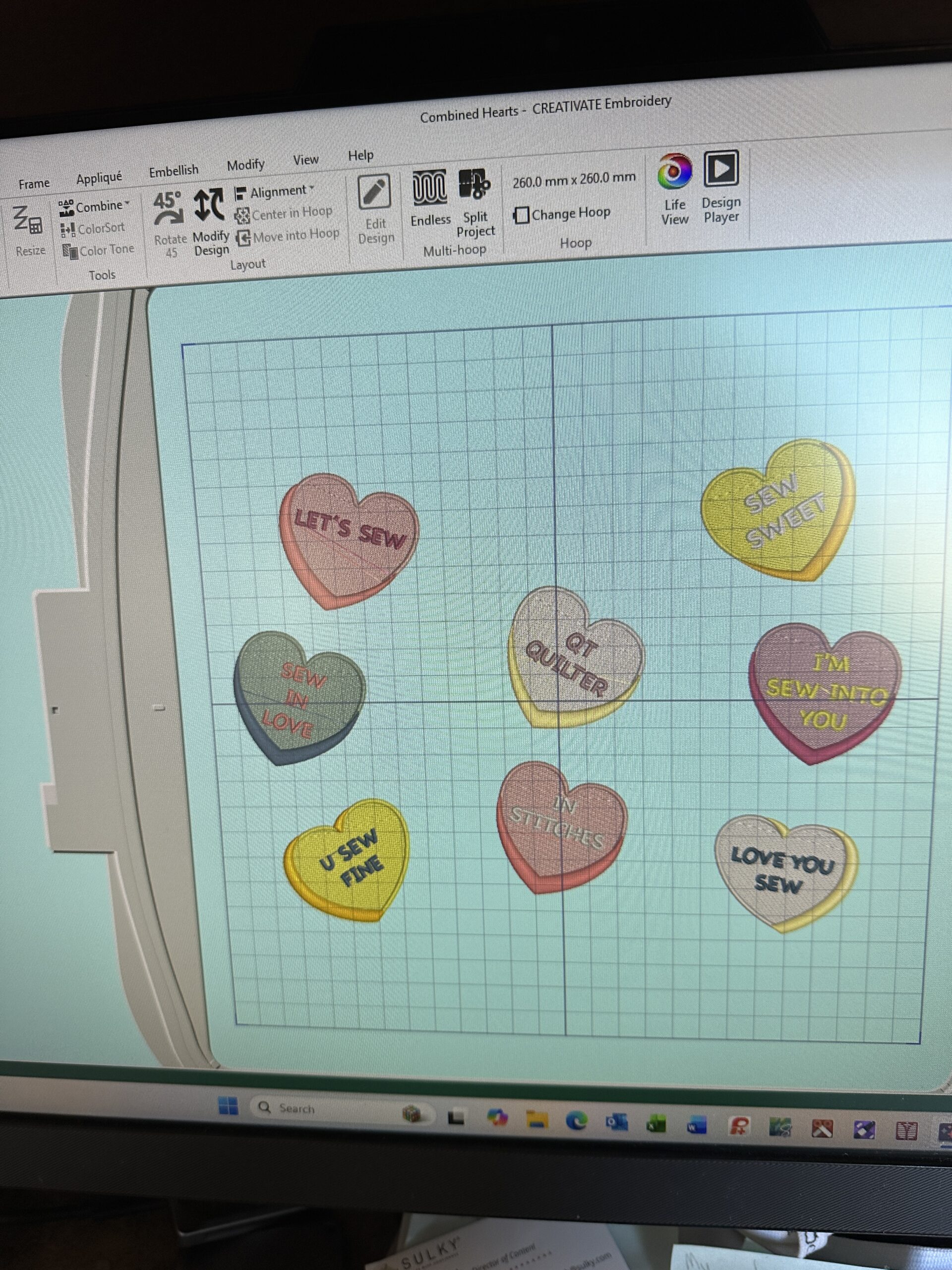 - Sulky Conver-sew-tion Heart Machine Embroidery Palette (which comes with 10 spools of Sulky Rayon Thread and 20 Conver-sew-tion Heart designs)