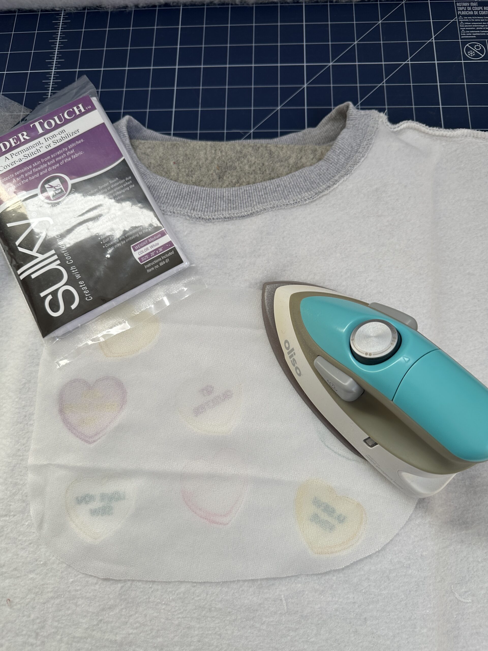Then, trim away the excess Soft n Sheer Extra from the sweatshirt wrong side.
