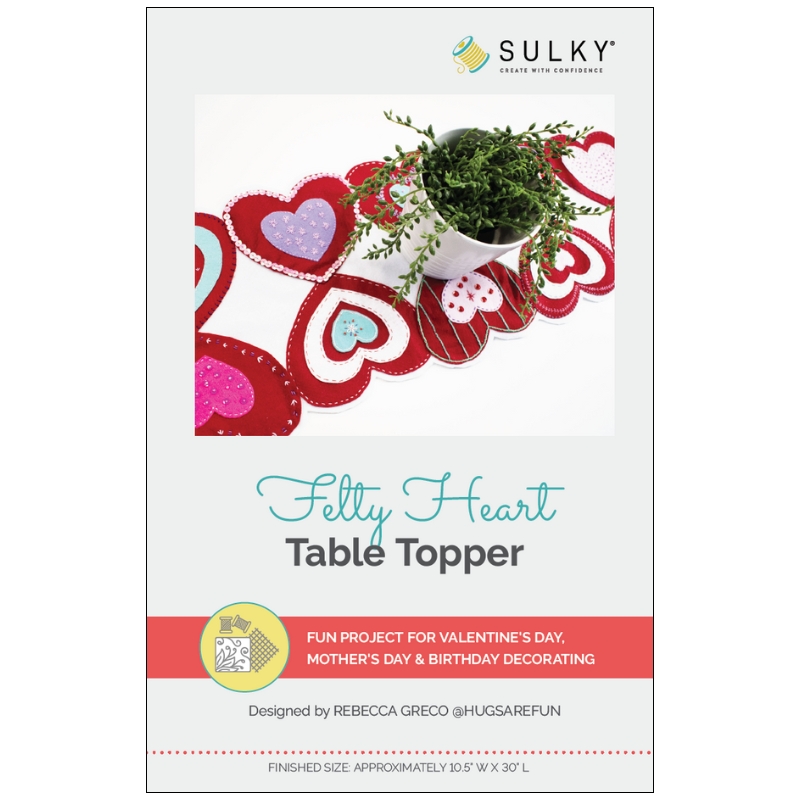 From fabric choices to thread colors and embellishments, the Felty Heart Table Topper invites you to express your personal style. Go sweet and simple, bold and modern, or glitzy and glamorous—the choice is yours.