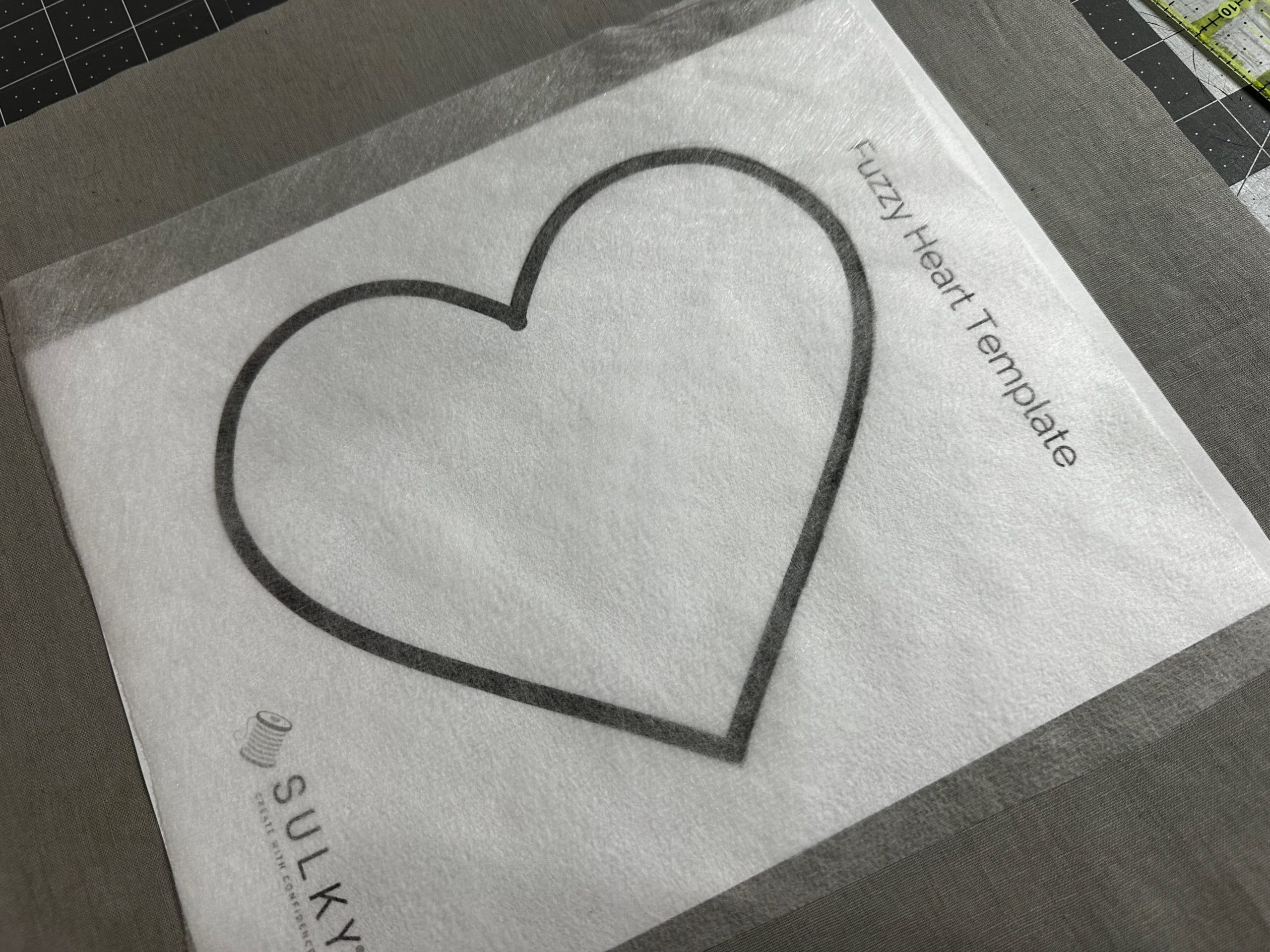 Print the Heart Template. Center the template onto the Soft ‘n Sheer Stabilizer, and then outline the heart shape. Then, set aside the stabilizer.