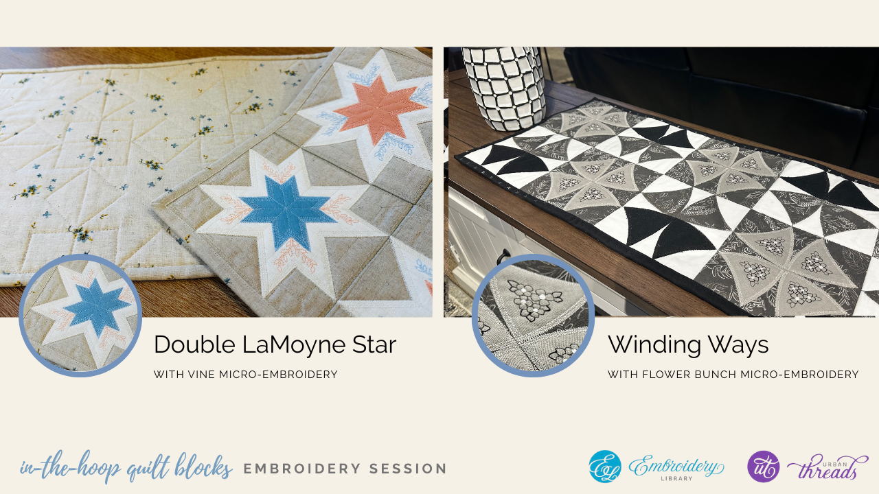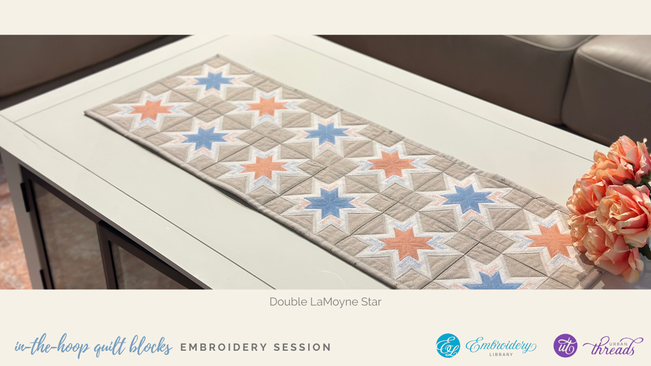 With the purchase of this Session, you’ll receive an in-the-hoop quilt block embroidery collection from Embroidery Library, valued at $17.92!