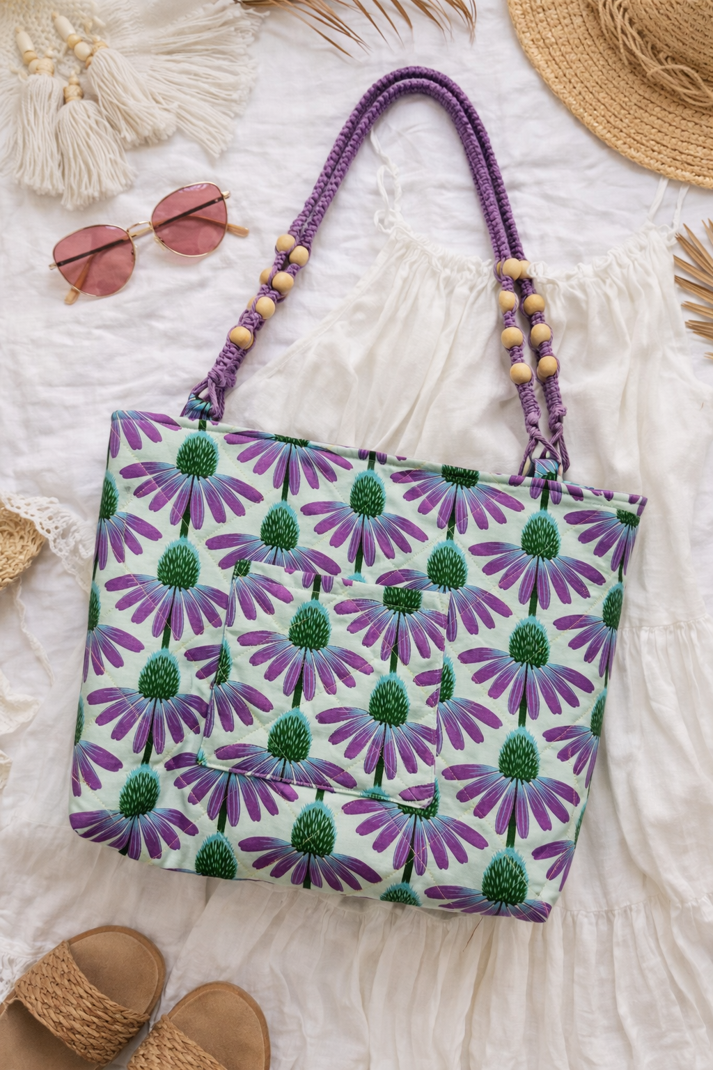 Quilted Tote with Macrame Handles