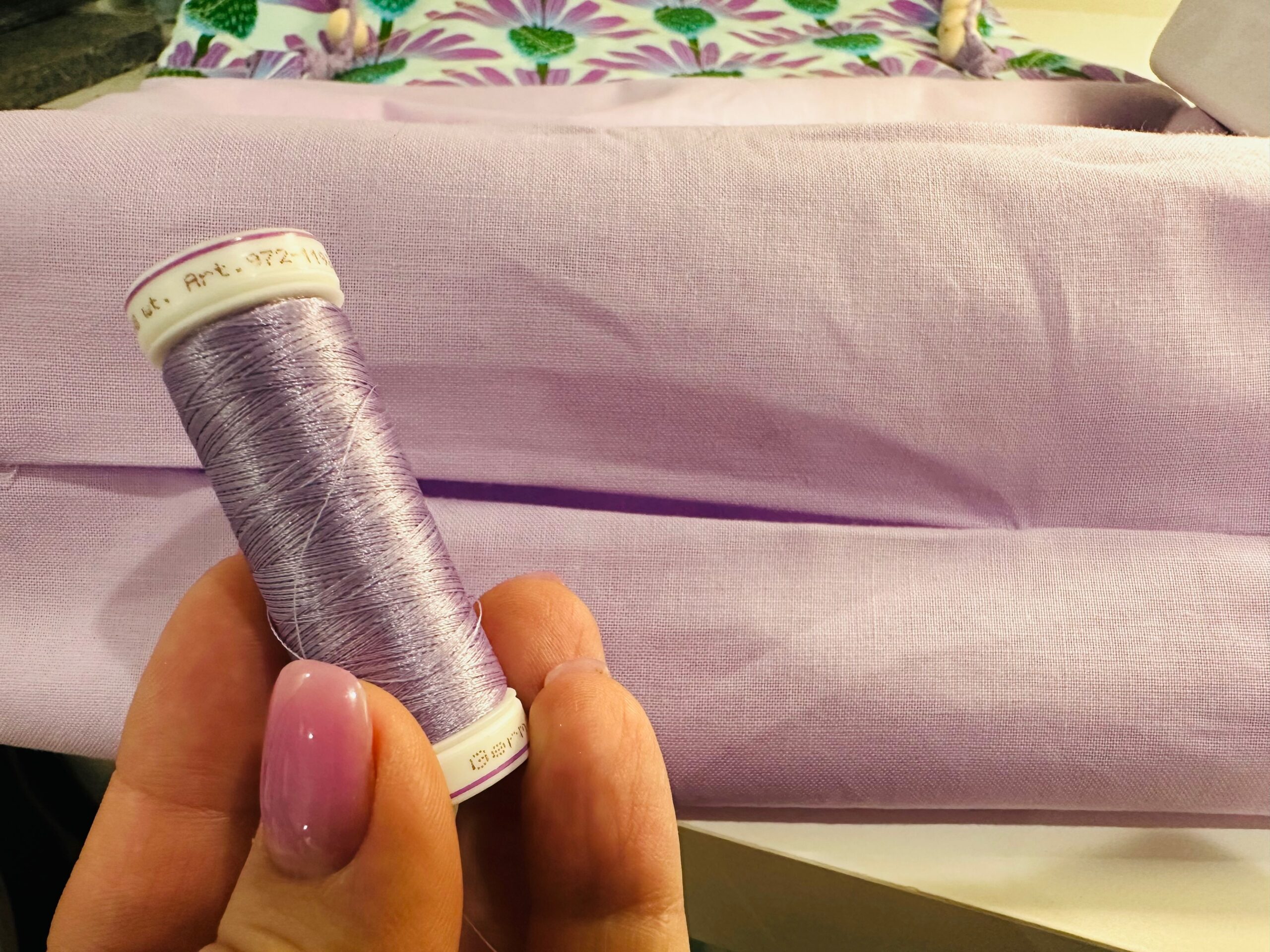 - Holoshimmer Metallic – pair with a size 90/14 Top Stitch Needle